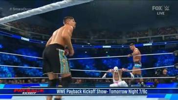 Así, los dos latinos se enfrentaron a los dos rudos odiados, quienes buscaban llegar a Payback con una victoria que pudiera servir de impulso anímico para Theory, quien deseaba recuperar el campeonato.