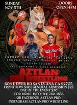 La empresa Aztlan Pro Wrestling presenta su evento este próximo, domingo 5 de noviembre en el 604 E Dyer RD Santa Ana, California desde las 4:00 de la tarde. Los boletos los puedes comprar ya al 714-760-1856 y también el mismo día del evento.