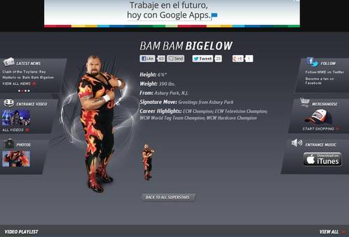 Recientemente WWE.com página oficial de la WWE agregó a el ex luchador Bam Bam Bigelow en la sección WWE Alumni