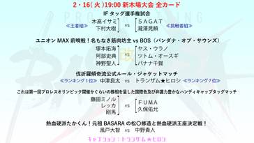 Sento Minzoku (Isami Kodaka y Daiki Shimomura) doblegaron a SAGAT y Akiyori Takizawa para concretar la primera defensa del Campeonato de Parejas IRON FIST. Tras la lucha, los monarcas recibieron el desafío de FUMA y Yusuke Kubo. El duelo se llevará a cabo el 23 de marzo, repitiéndose la semifinal del Iron Fist Tag Tournament del año pasado. En ese entonces, FUMA no quedó convencido del resultado y declaró que IRON PRIEST era el mejor equipo.