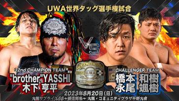 Kohei Kinoshita y «brother» YASSHI de Dove Pro, consiguieron la segunda defensa del Campeonato Mundial de Parejas UWA superando a la pareja de BJW conformada por Kazuki Hashimoto y Satsuki Nagao.