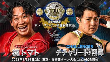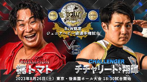 7. BJW Jr. Heavyweight Title: Kaji Tomato (c) venció a Chicharito Shoki (15:56) con un Red Eye defendiendo el título