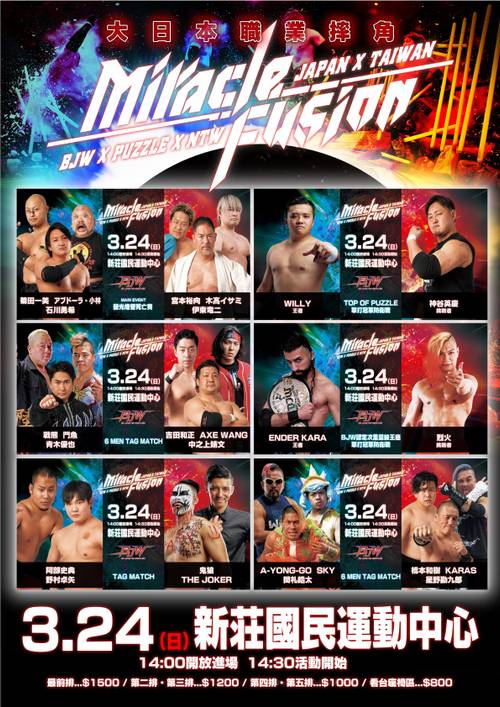 Big Japan Pro Wrestling celebró «Miracle Fusion» su primer evento en Taipei, Taiwán.