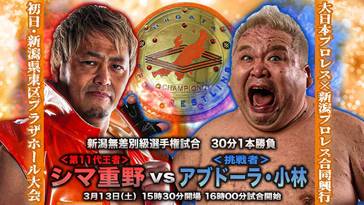 6. Niigata Openweight Title: Abdullah Kobayashi derrotó a Shigeno Shima (c) (18:48) con un Diving Bakachinga Elbow Drop – conquistando el título