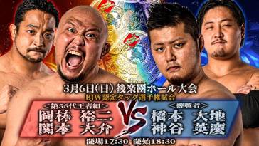 6. BJW Tag Team Title: Daichi Hashimoto y Hideyoshi Kamitani derrotaron a Yuji Okabayashi y Daisuke Sekimoto (c) (23:23) con un Backdrop Suplex de Kamitani sobre Okabayashi conquistando el título