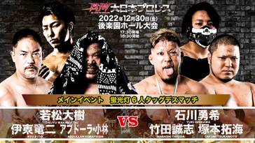 8. Fluorescent Lighttubes Death Match: Ryuji Ito, Abdullah Kobayashi y Daiju Wakamatsu vencieron a Masashi Takeda, Takumi Tsukamoto y Yuki Ishikawa (16:22) con un German Suplex Hold de Wakamatsu sobre Ishikawa