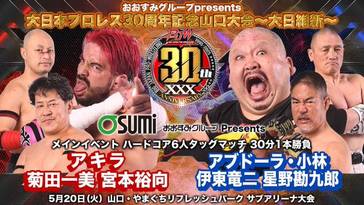 «30th Anniversary Yamaguchi ~ Dai Nippon Ishin» fue el evento que Big Japan Pro Wrestling presentó en el Yamaguchi Refresh Park Sub-Arena.