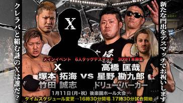 7. Fluorescent Lighttubes + α Death Match: Takumi Tsukamoto, Masashi Takeda y Violento Jack derrotaron a Masaya Takahashi, Kankuro Hoshino y Drew Parker (14:23) con la Amatalan de Jack sobre Parker