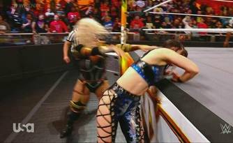A pesar de que Nikkita superaba en tamaño y fuerza a Blair Davenport, las cosas no fueron nada sencillas para ella, ya que Blair sacó sus mejores golpes, poniendo en problemas a su rival.