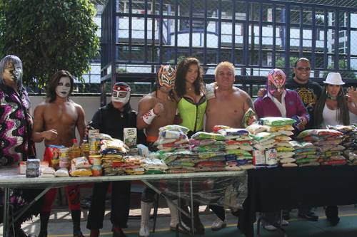 Los luchadores de la Triple A, Atomic Boy, El Brazo, Octagoncito, Mini Charly Manson y el Megacampeón, El Texano Jr., se dieron cita en la escuela San Carlos, lugar donde intercambiaron fotos y firmas de autógrafos por los víveres que los pequeños llevaban. Toda la escuela se volcó emocionadamente para convivir un momento con los luchadores, luego de entregar sus víveres los cuales se entregaran posteriormente al albergue.