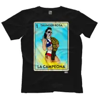 Thunder Rosa se convirtió en la Campeona Mundial AEW, al derrotar a Britt Baker el 16 de marzo de 2022 en el episodio Dynamite: St. Patrick’s Day Slam. Desde antes de ello, la luchadora mexicana se había vuelto sumamente popular entre los fans, por eso no es de extrañarse que entre su mercancía oficial, Shop AEW tiene ya ocho camisetas a la venta.