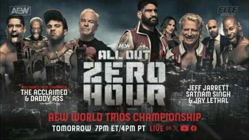 Mientras, el resto de concreciones ocuparán la «Zero Hour» de All Out. Con el Campeonato Mundial de Tríos sobre la mesa, y acompañados de Dennis Rodman, The Acclaimed y Billy Gunn lucharán contra Jeff Jarrett, Jay Lethal y Satnam Singh; veremos una batalla campal «Over the Budget» (cuyo ganador podrá donar 50 mil dólares al organismo que desee) y Athena hará equipo con Mercedes Martinez y Diamante para ir contra Hikaru Shida, Willow Nightingale y Skye Blue.