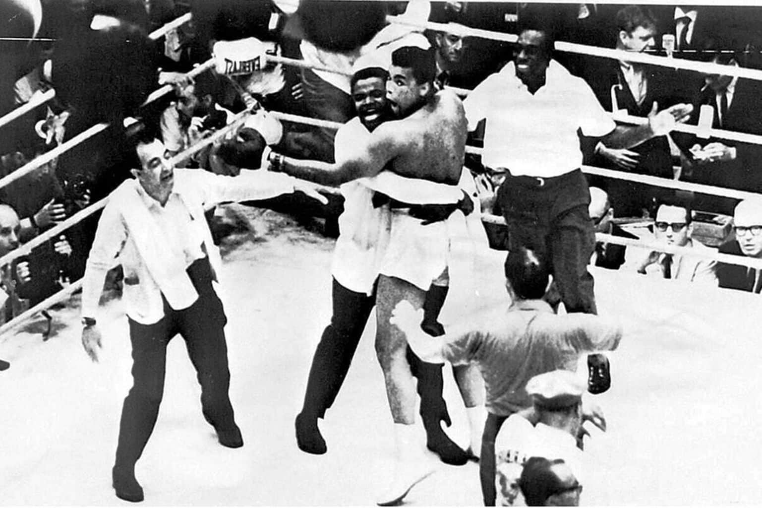 Llegado el momento de la pelea Clay se presentó al ring acompañado por Sugar Ray Robinson, en tanto Liston fue con Joe Louis. En el primer asalto,
