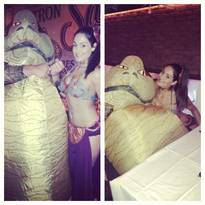 La ex Campeona de Divas WWE se caracterizó con los atavíos de esclava que portara la actriz Carrie Fisher, personificando a la Princesa Leia en la tercera entrega de la saga (y sexta en la cronología) El Regreso del Jedi, durante una fiesta de Halloween. Sí, Jabba the Hutt, es John Cena.
