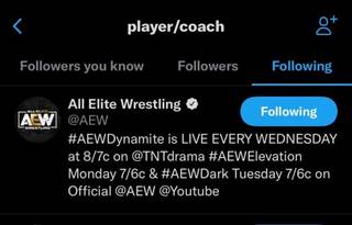 El nativo de Chicago ha seguido a la cuenta de All Elite Wrestling hace instantes. Aquí la prueba: