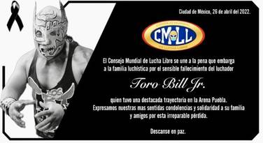 “CMLL Se une a la pena que embarga a la familia luchística por el sensible fallecimiento del luchador Toro Bill Jr. quien tuvo una destacada trayectoria en la Arena Puebla. Expresamos nuestras más sentidas condolencias y solidaridad a su familia y amigos por esta irreparable pérdida. Descanse en paz”, escribieron a través de un comunicado.