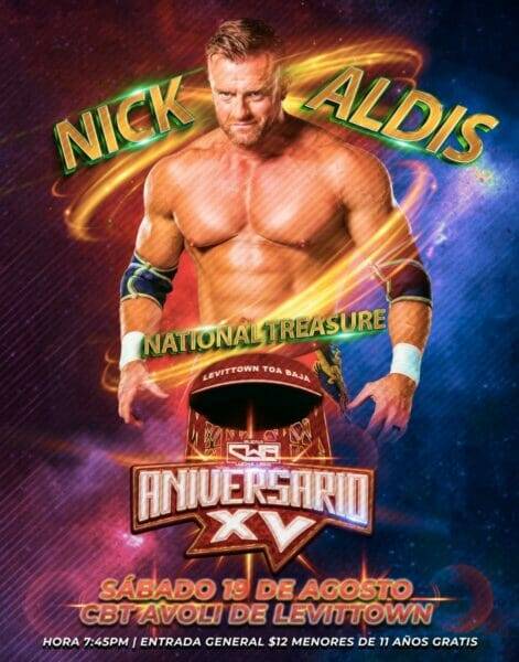 La Empresa del Pueblo, la CWA ha confirmado la participación del ex campeón mundial de la NWA, Nick Aldis que estará regresando a la empresa este próximo Sábado 19 de Agosto desde las 7:45 pm en la Cancha Avoli de Levitown en el pueblo de Toa Baja, Puerto Rico. Al momento la empresa no ha confirmado frente quien estará midiéndose el «National Treasure».