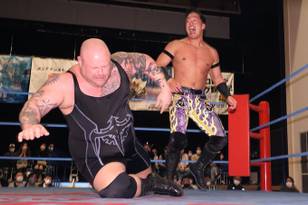 Estoy bajo contrato con AJPW para competir en los torneos. Entonces, cuando estoy en casa (Georgia, Estados Unidos), estoy libre, pero cuando estoy allí, estoy bajo contrato, por supuesto. Así es básicamente cómo funciona. No es por evento, los contratos son por torneo así he estado trabajado. Aunque después de este torneo (Champion Carnival), he competido en todos los torneos que organiza All Japan. Creo que la World Tag League con Shuji Ishikawa, la Royal Road y el Champion Carnival. Entonces, estoy tratando de pensar si hay otro torneo. No estoy seguro (se rió).