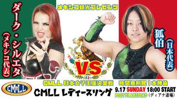 Se trata del vacante Campeonato Femenil CMLL Japón que disputarán la mexicana Dark Silueta y la japonesa de Pro Wrestling WAVE, Kohaku.