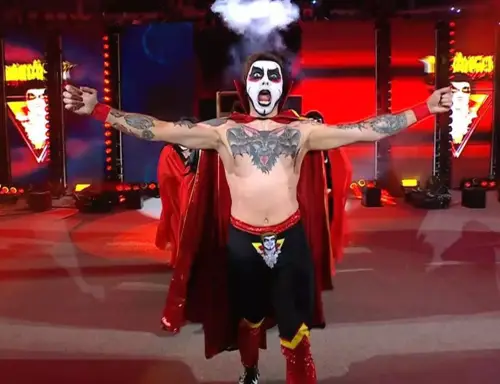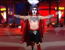 Los rumores eran ciertos. Danhausen era quien estaba dentro de la caja misteriosa. Muchas vampi-chicas góticas salieron de la caja, y luego, apareció Danhausen para mandar su primera maldición en WWE.