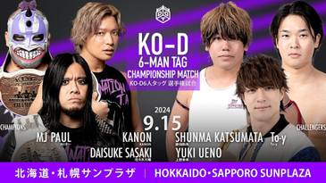 7. KO-D 6 Man Tag Team Title: Daisuke Sasaki, KANON y MJ Paul (c) vencieron a Yuki Ueno, Shunma Katsumata y To-y (21:20) con un Crossover Facelock de Sasaki sobre Katsumata defendiendo el título.