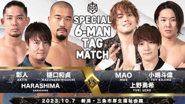 7. Yuki Ueno, MAO y Toi Kojima vencieron a HARASHIMA, Kazusada Higuchi y Akito (19:37) con la WR de Ueno sobre Akito.