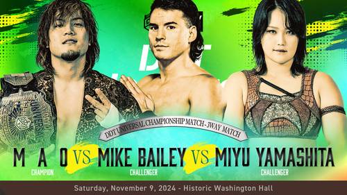 8. DDT Universal Title, 3 Way Match: Miyu Yamashita veció a MAO (c) y Mike Bailey (21:25) con la Skull Kick sobre Bailey – conquistando el título.