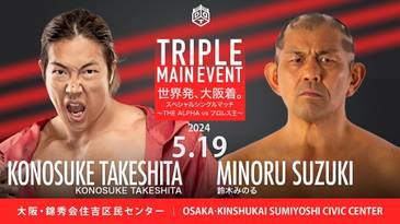 A pesar de que Minoru Suzuki declaró que vencería a Takeshita, fue un desafío difícil, pero Takeshita pudo desgastarlo hasta el punto de colapsar. Suzuki resistió todos los Elbow Strikes y Jumping Knees hasta que un último Elbow Butt lo derribó para el toque de espaldas.