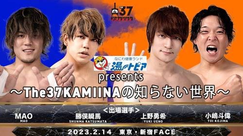 7. THE37KAMINA’s Unknown World ~ Beyond Toi Survival 4 Way Match: Toi Kojima derrotó a Shunma Katsumata, Yuki Ueno y MAO (19:38). Orden de eliminación: Yuki Ueno eliminó a MAO lanzándolo por encima de la tercera cuerda (17:39). Shunma Katsumata eliminó a Yuki Ueno con un Diving Foot Stomp (18:12). Toi Kojima eliminó a Shunma Katsumata por Pinfall (19:38)