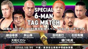En el turno principal, el festejado, quien fue recibido con una gran ovación en su ciudad natal, unió fuerzas con Jun Akiyama y Yukio Naya para imponerse a Harimao (Kazusada Higuchi, Naomi Yoshimura y Yuki Ishida). Fue Yamato quien dio el triunfo a su equipo con uno de sus movimientos característicos, una Northern Light Bomb sobre Ishida.
