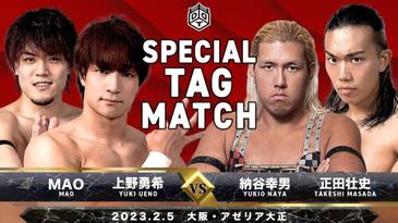 8. Special Tag Match: Yuki Ueno y MAO vencieron a Yukio Naya y Takeshi Masada (18:47) con un WR de Ueno sobre Masada.