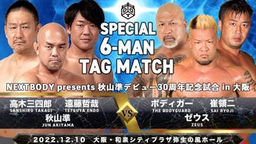 7. Jun Akiyama Debut 30th Anniversary Match in Osaka ~ Special Six Man Tag Match: Zeus, The Bodyguard y Ryouji Sai vencieron a Jun Akiyama, Tetsuya Endo y Sanshiro Takagi (19:01) con un Jackhammer de Zeus sobre Takagi