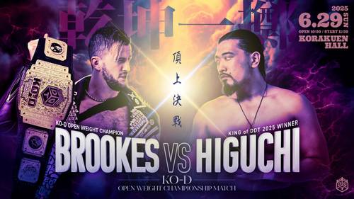 Tres meses después de su regreso de una lesión, Kazuasada Higuchi escaló de nuevo a la cima de DDT para recuperar su lugar como el Campeón de Peso Abierto KO-D . Su lucha con Chris Brookes comenzó con una batalla de Chops y rápidamente escaló. Brookes aplicó un Piledriver sobre el borde del ring, un Diving Foot Stomp hacia afuera, un Avalanche Double Arm Suplex de vuelta al ring y también la Somato. Higuchi se libró de la Praying Mantis Bomb, y aplicó un Heabutted para tomar el control de la lucha y aplicó el Claw Slam, del cual Brookes también se libró. Higuchi luego se abrió camino con un Octopus Hold y usó Lariats, así como el Doctor Bomb para ablandar al campeón. Otro Claw Slam (que Brookes intentó detener pellizcando la nariz de Higuchi) después de eso mantuvo a Brooks en la lona para la cuenta y convirtió a Higuchi en el nuevo campeón. Luego de celebrar, Higuchi recibió el desafío de HARASHIMA.