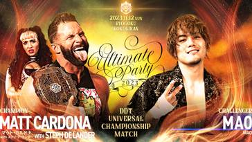 Uno de los duelos más esperados de la cartelera de «Ultimate Party 2023» de DDT Pro Wrestling fue la disputa del Campeonato Universal DDT entre Matt Cardona y MAO.