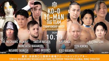 5. KO-D Ten Man Tag Team Title: Keigo Nakamura, To-y, Yuya Koroku, Yuki Ishida y Kazuma Sumi (c) vencieron a Chris Brookes, Masahiro Takanashi, Munetatsu Nakamura, Takeshi Masada y Mecha Mummy (c) (18:12) con un Modified Crucifix Hold de Nakamura sobre Mummy – Conquistando el título