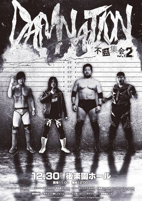 Tras los resultados de la elección general de DDT, DAMNATION fue la facción preferida por los aficionados y ganó el derecho a organizar su propia función. Está fue “DAMNATION FUHO SHUKAI* VOL. 2”