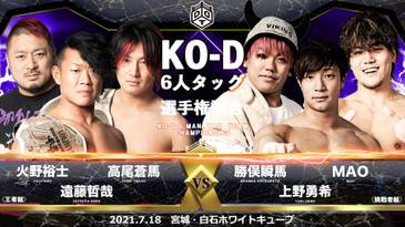 Soma Takao, Tetsuya Endo y Yuji Hino de DAMNATION hicieron la segunda defensa exitosa del Campeonato de Tercias KO-D contra The 37KAMIINA (MAO, Shunma Katsumata y Yuki Ueno) en el evento principal. Endo, oriundo de Shiroishi, dio el triunfo a su equipo, en medio de la ovación de los aficionados. Tras la celebración, los monarcas recibieron el desafío de Eruption (Kazusada Higuchi, Saki Akai y Yukio Sakaguchi). La lucha se llevará a cabo oficialmente en Wrestle Peter Pan 2021 el 21 de agosto en el Estadio Fujitsu.