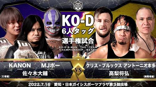 6. KO-D Six Man Tag Team Title: Daisuke Sasaki, MJ Paul y KANON (c) derrotaron a Masahiro Takanashi, Chris Brooks y Antonio Honda (19:30) con un Just Cobra Twist de KANON sobre Honda defendiendo el título