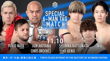 6. Special Six Man Tag Match: Chris Brookes, Jun Akiyama y Yukio Naya vencieron a Yuki Ueno, Shunma Katsumata y To-y (20:57) con der Praying Mantis Bomb de Brookes sobre To-y.