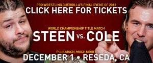 El mes empieza de la mejor forma posible, el sábado uno de diciembre es el último evento de 2012 de PWG, llamado así, literalmente, donde Kevin Steen empieza a tener problemas, ya que defiende ante un sorprendente Adam Cole que dio el campanazo en la Battle of Los Angeles de este año.
