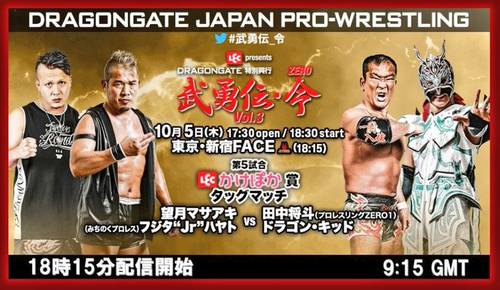 El veterano Masato Tanaka de Zero1 se alió con Dragon Kid para dar cuenta del equipo de Masaaki Mochizuki quien llevó como coequipero a Fujita «Jr» Hayato de Michinoku Pro.