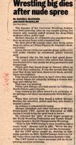 El fundador de la Universal Wrestling Federation falleció ayer después de ser descubierto activando alarmas de incendio y corriendo desnudo por su oficina llena de drogas en Midtown, según la policía.