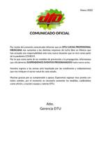 «En DTU Lucha Libre Profesional Mexicana, nos sumamos a las distintas empresas de lucha libre en México que han actuado con responsabilidad ante esta nueva situación que se vive como parte de la pandemia