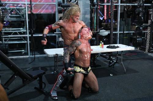 Luego, se dirige a Edge y le dice que la semana pasada no aceptó su reto porque vio duda en él, y … Edge aparece.