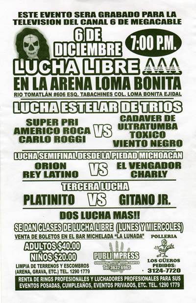 Cadáver de Ultratumba y Superluchas invitan a la lucha libre el 6 de diciembre de 2009