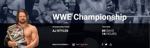 El cambio no es ni de diseño, ni de campeón… Sino que el título dejará de conocerse oficialmente como Campeonato Mundial Peso Completo WWE para pasar a llamarse Campeonato WWE. Así aparece ahora el perfil de AJ Styles como campeón en WWE.com:
