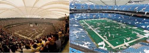 El Silverdome, de Pontiac, Michigan, célebre por ser la casa de Wrestlemania III, con el choque clásico de Hulk Hogan y André el Gigante que sirvió para llevar a alturas insospechadas la Hulkmania y con ello a la empresa, se está cayendo a pedazos.