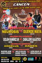 Una de las rivalidades más sonadas en este territorio es la de Duente Maya y Neurosis. El primero es de Cancún, mientras que el segundo viene de la capital del estado, Chetumal. Ambos se enfrentarán en una lucha de máscara contra cabellera. ¿Podrá el de casa desenmascarar a Neurosis?