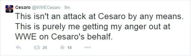 Este no es de ninguna manera un ataque a Cesaro. Simplemente soy yo sacando mi rabia hacia WWE en nombre de Cesaro.