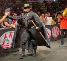 Y vaya que la gente resultó sorprendida, pues apareció el Zorro, quien se enfundó en su primer traje con el que llegó a AAA, caracterizado completamente con el personaje de los cómics y películas.
